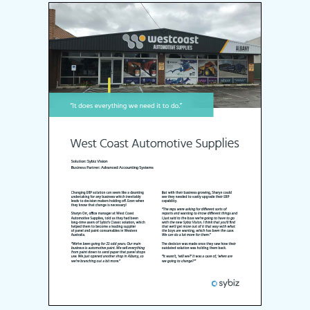 Even when assessing other ERP solutions on the market, Sharyn and the team at West Coast Automotive could tell Sybiz was going to be able to carry their business into the future.