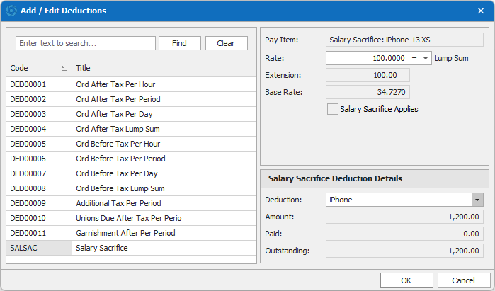 We create a new deduction pay item that is set to the new Category of Salary Sacrifice.