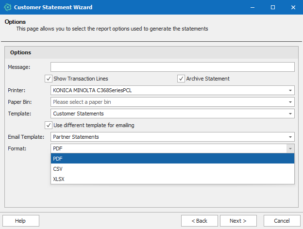 When sending statements via email, the statement wizard will now continue if an error occurs such as a power or internet disconnection. If an error does occur, users can now print or export a list of any statements that are outstanding and re-run the wizard for those affected. (CR200744165)