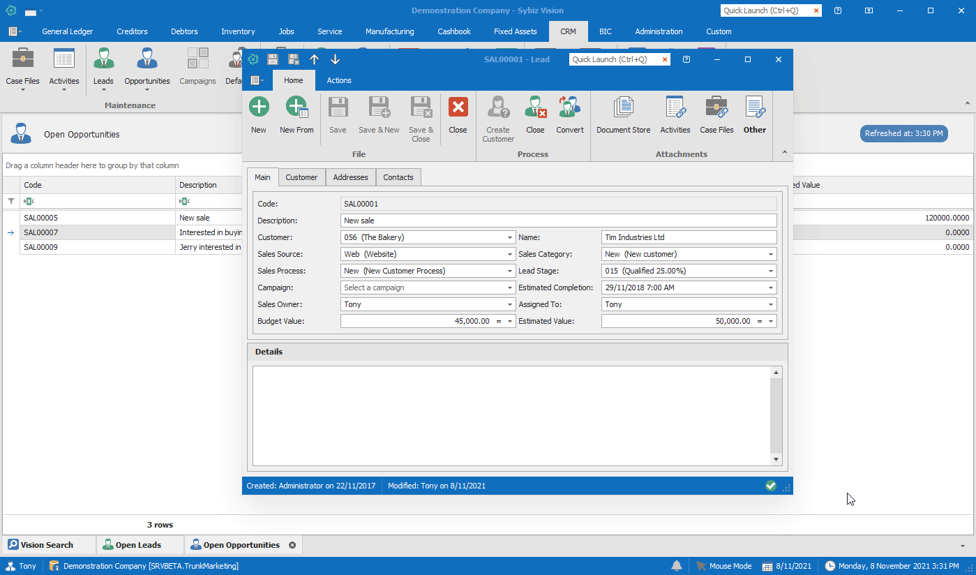 Get more out of Sybiz Vision CRM with new classification fields for Case Files. This new function gives customer-facing staff the ability to drill down further in grids and CRM analytics to see even more information in a structured and useful way.