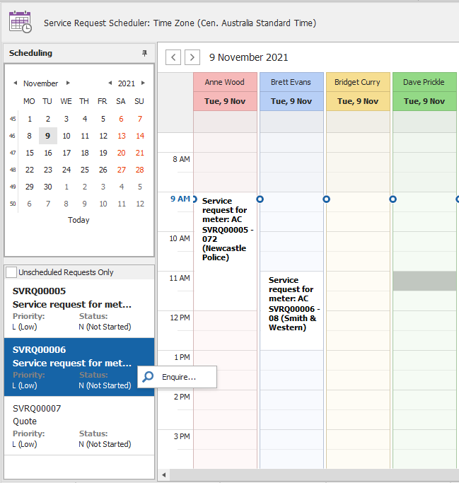 Users are now able to quickly access more information about Job and Service requests directly from the Scheduler with a new right-click enquire option available. (CR190641217)