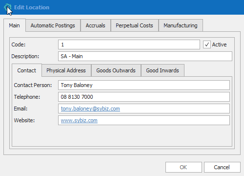 Information such as contact, address and inwards and outwards good instructions can now be added to product locations in Sybiz Vision. This new enhancement helps further automate the purchasing process and keeps suppliers more informed by enabling users to include these important details on purchase transactions. (CR160931154)