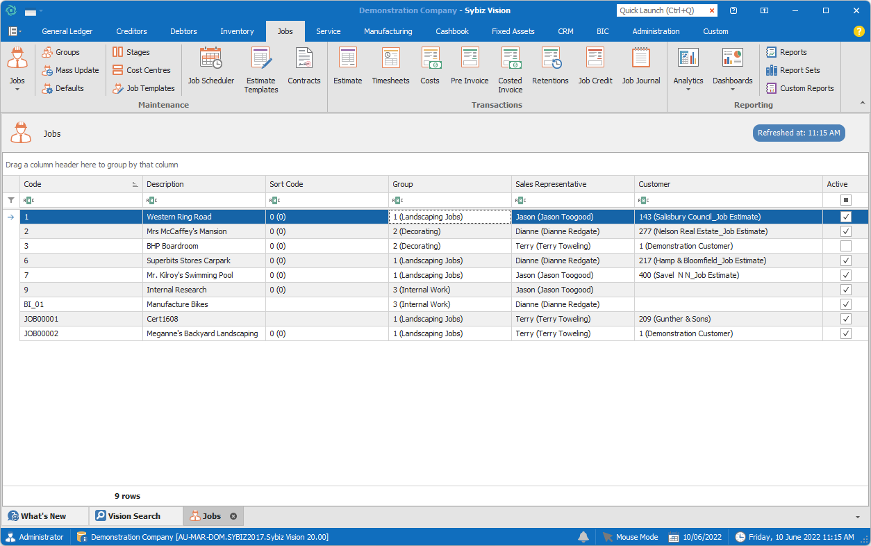 A new column has been added to the standard Jobs grid that displays the allocated sales representative for a specific job, giving more information to users on the fly. (CR2203-0433)