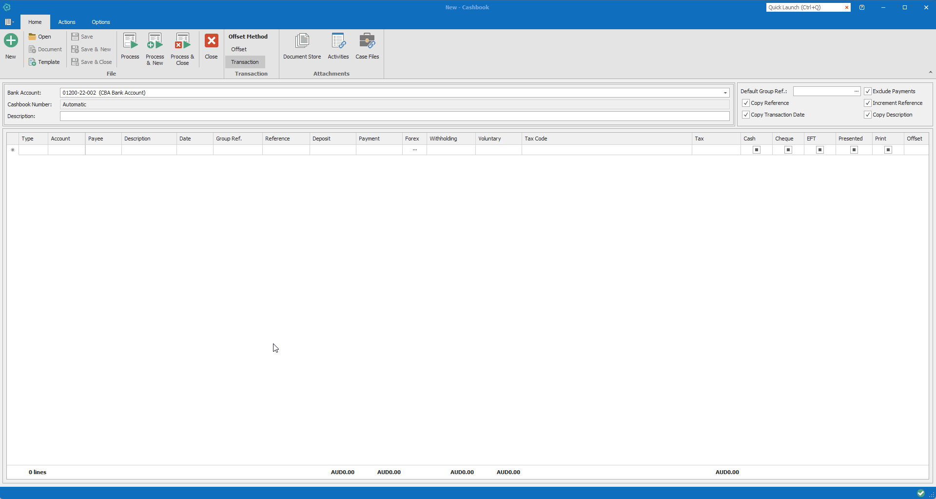 Additional security rights have been added to restrict unintended users from entering new or changing bank account details in Cashbook where EFT is ticked but there is no account already saved in Sybiz Vision to help prevent instances of fraud or error. These can be customised to each role or user to allow certain functions such as entering receipts but restrict outgoing payments to other users. Accounts are able to be secured individually by type (GL, CR, DR, JC, SV) from Administration > Roles > Transactions > Cashbook. (CR210546169)