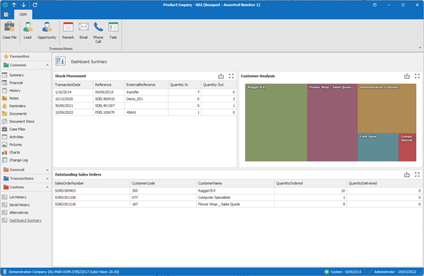 Users now have the ability to access custom dashboards from enquiry screens, allowing easy access to visual data and quick comparisons on the fly. Visibly accessible from the Custom dropdown on enquiry screens, custom enquiries can be designed and added via the Administration tab > Custom Enquiries and then selecting Dashboard as the type. These effortlessly available dashboards can display grids, pivots, and graphs, just like standard dashboards, with individual panel sections able to be maximised and minimised as needed. If a panel is maximised and the enquiry screen closed, Sybiz Vision saves this preference to the user state. (CR170433473)