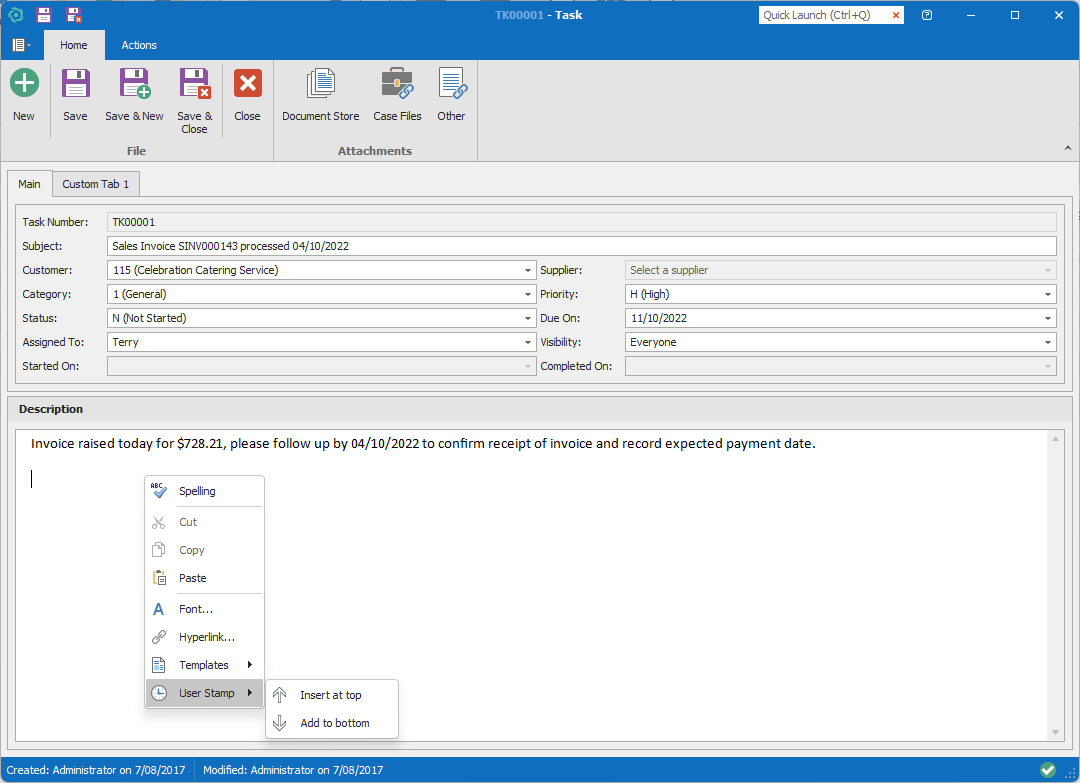 User stamps generated in Sybiz Vision's CRM activities, case files, and system notes now have an option to be added to the top or bottom of existing text for ease of use and for improved alignment with business processes.