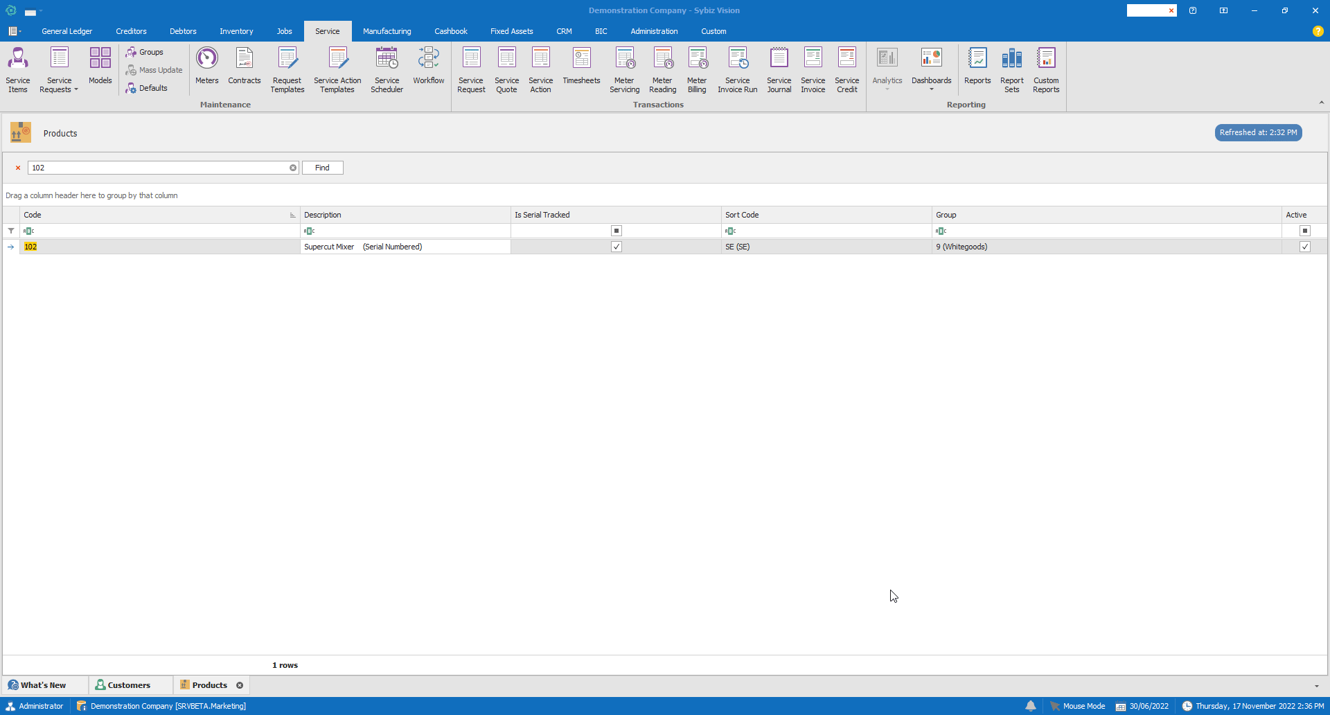 Service Management has been levelled up in Sybiz 23, now offering an advanced version for customers who need added functionality. Much like Advanced Jobs, Advanced Service brings with it service invoices and credits. Individual line items from service requests can now be put through as separate invoices and credits with different tax codes or requirements, allowing greater flexibility in the way service items are invoiced and credited. (CR190540967, CR201144895)