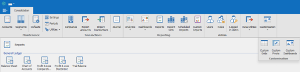 Custom grids, analytics and dashboards are now available in a consolidation company with page/ribbon type restrictions appropriate to the user interface. (CR2502-4395)
