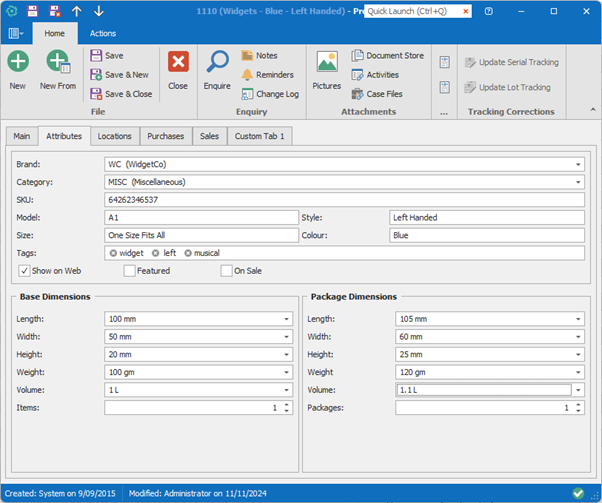 Products now contain an Attributes tab containing additional fields for further product information to assist with website-based functionality and ecommerce integrations.