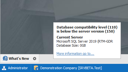 A new notice system in the status bar of Sybiz Visipay will display new warning or error icons for potential issues with database and server versions. This new enhancement will help end users stay more informed about minimum database and server version requirements. (CR210846664)