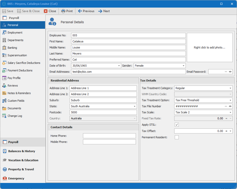 Employee number, employee name, full address details and tax file numbers have been required data in Sybiz Visipay for STP since its launch.